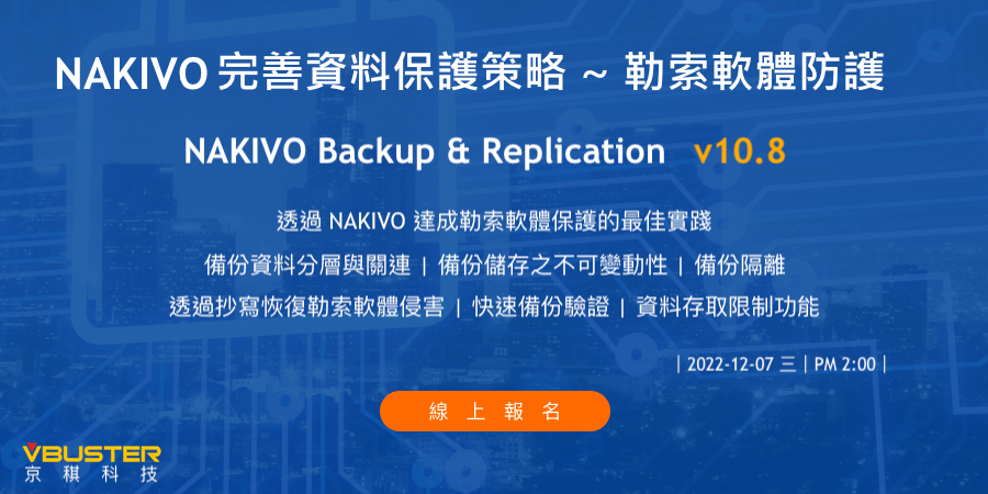 議程:NAKIVO 完善資料保護策略 ~ 勒索軟體防護